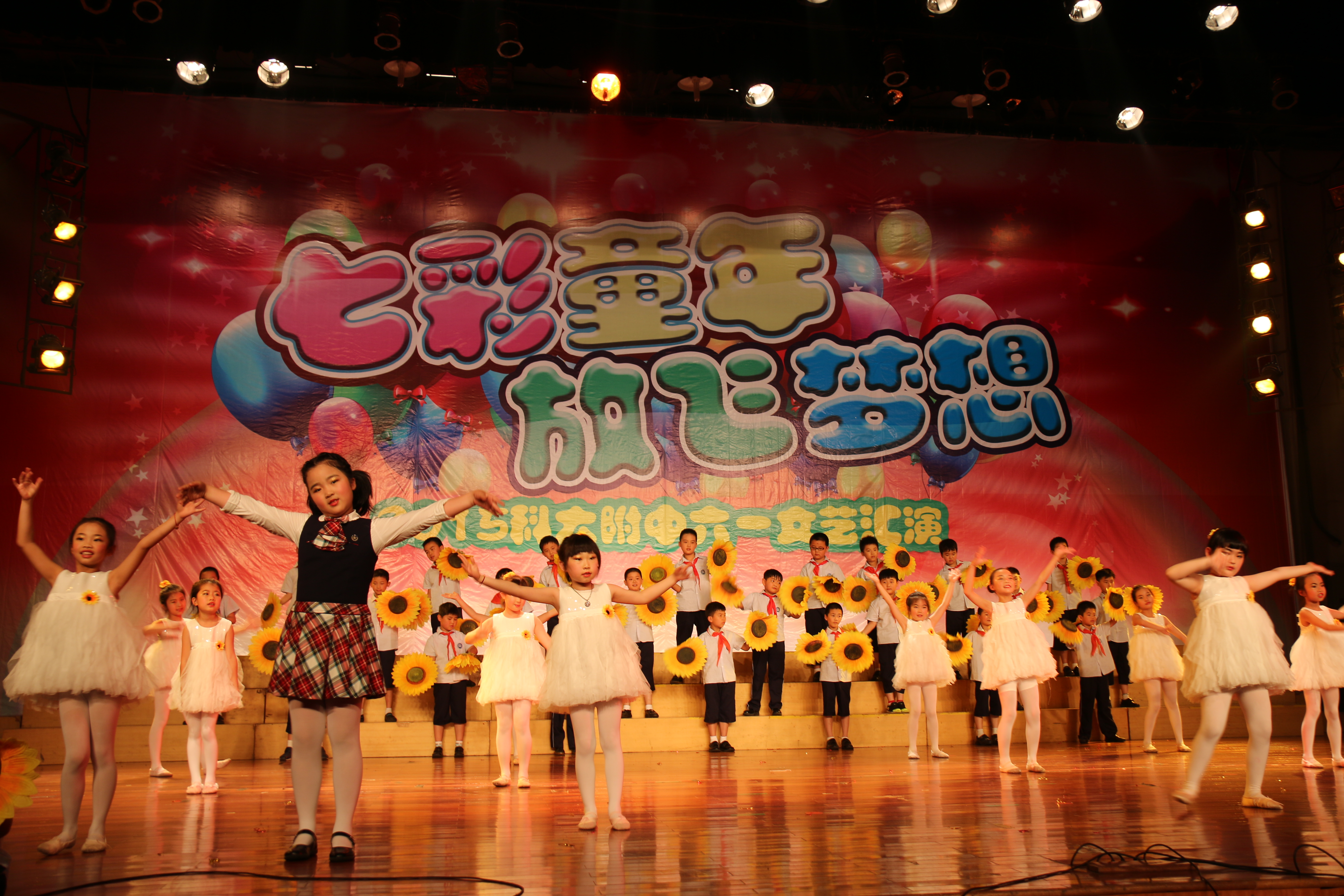 6月1日上午,科大东区礼堂人山人海,热闹非凡。科大附中小学部在这里隆重举行文艺汇演,庆祝六一国际儿童节。中国科学技术大学“关心下一代工作委员会”副主任鹿明、团委书记张平、教务处副处长汤家骏、科大资产经营有限责任公司董事长王兵、总经理应勇、中科大幼儿园园长袁洁等领导以及科大附中领导班子成员莅临现场,与孩子们共度六一。