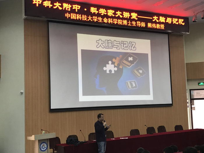 2018年3月26日下午,中国科学技术大学生命学院博士生导师熊伟教授应邀为中科大附中五年级全体学生开展了一场关于大脑与记忆的科学讲座。