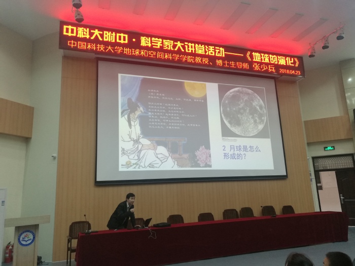 2018年4月22日是第49个世界地球日,4月23日下午,中国科学技术大学地球和空间科学学院博士生导师张少兵教授,应邀为中科大附中小二年级全体学生开展了一场关于“地球演化”的科学讲座。活动由二年级年级组长何向林老师主持。