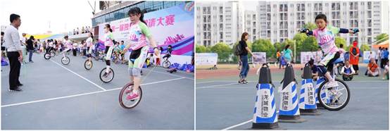 比赛当天,骄阳似火,小选手们在烈日下顽强拼搏,参加了少年组竞速和场地障碍等全部项目的比赛,充分展示独轮车技艺。队员们在甘肃和江西两个竞速强队面前毫不示弱,奋力争先,有的队员摔倒后立刻爬起来继续前进,展现了顽强的意志和坚持到底的决心。