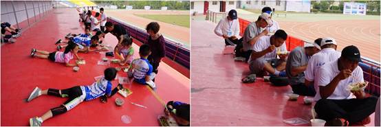 随行的家长们一边为孩子们加油鼓劲,一边承担了志愿者的工作,积极做好后勤保障和服务工作。