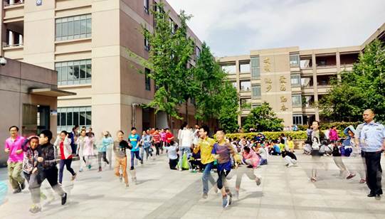 在疏散演练活动前,学校综治办制定了详细的方案,成立了由李蓓校长任组长,其他校领导任副组长,各处室主任、年级组长为组员的防震应急避险疏散演练领导小组,并就具体活动进行了周密安排:从演练疏散路线的规划、各楼层疏散指导人员的安排、疏散演练的主要环节和注意事项等方面进行了细致有效地落实。