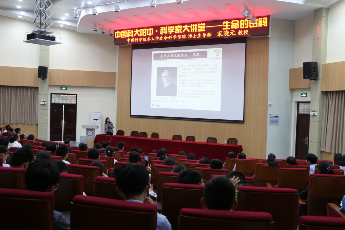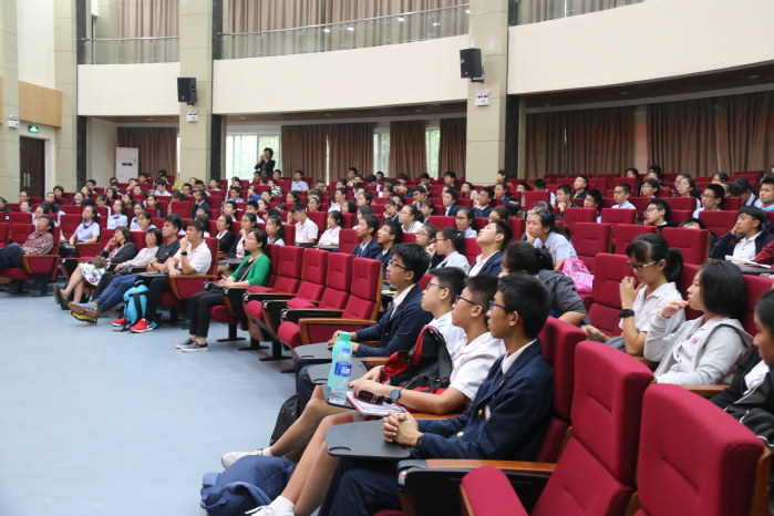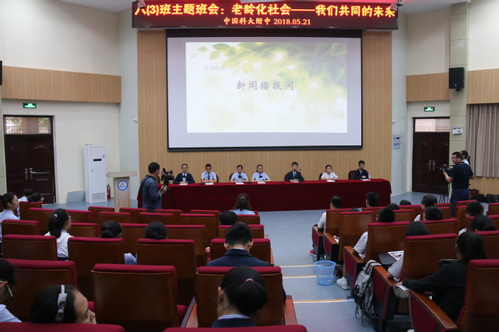下午,立化中学来访师生与附中八年级全体师生齐聚报告厅,聆听由中国科学技术大学生命科学学院博士生导师、“国家创新人才计划”入选者宋晓元教授带来的《寻找生命的密码》科学讲座。神奇的生命科学知识吸引了在座师生,大家全神贯注,沉浸在科学的海洋里。讲座结束后,立化中学师生参加了八(3)班“老龄化社会——我们共同的未来”主题班会。同学们用生动的表演和丰富的形式,展现了他们对老龄化问题的思考。活动中,两校学生还就“老龄化社会”问题展开讨论。