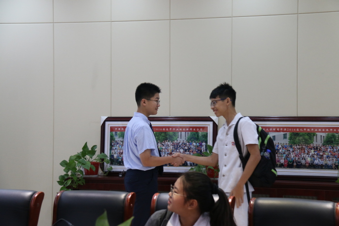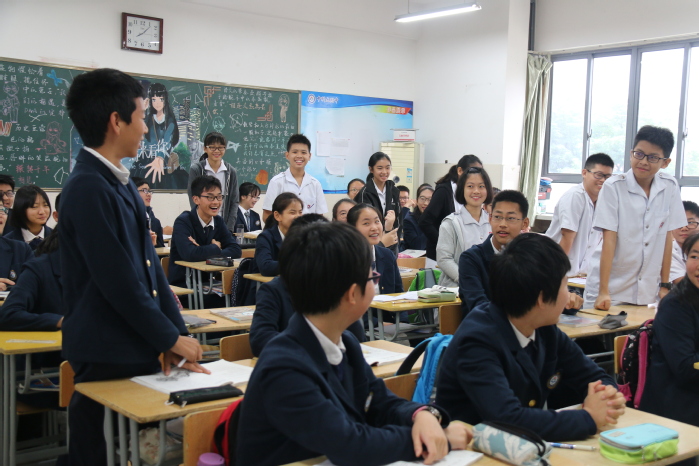 上午7时30分,中科大附中副校长蔡婉若、国际交流办公室主任钟卫在会议室热情接待了立化中学师生。蔡婉若副校长首先对来访师生表示热烈欢迎,并向大家简要介绍了学校的情况与本次活动的内容。随后,来访的34位立化学生与附中八年级同学一对一结成对子,并进班学习、交流,体验课堂教学。中科大附中八年级师生在班级举行了丰富多彩的欢迎仪式,向新加坡小伙伴们介绍中国美食、文化,并相互认识,就学习、生活、兴趣爱好等展开沟通交流。短短一节课的时间,孩子们的心迅速拉近了。