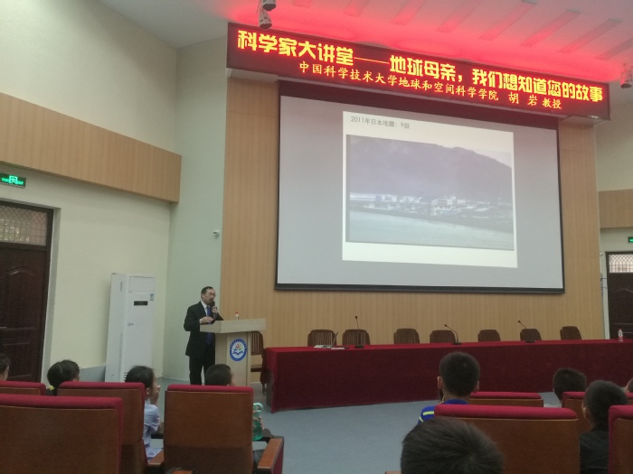 胡岩教授用详实、生动的图片给孩子们讲述了地球相关的知识。在宇宙数以亿计的星系大家庭中,据我们目前所了解,地球是唯一有生命的星球。除此之外,地球内部也是活跃的,最常见的表现形式是地震和火山。巨大的地震往往极具破坏性,使房屋、桥梁等建筑物倒塌,产生滑坡、土壤液化等现象。而一些海里的地震还可能产生巨大的海啸,给人们生命财产造成巨大的损失。胡岩教授播放了国外几次强震的视频,巨大的破坏性给孩子们带来强烈的震撼。