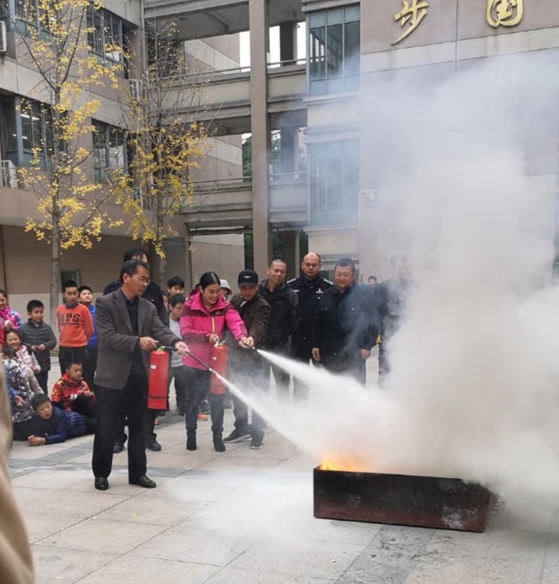 下午4时05分左右,小学部B楼三楼的楼道上突然弥漫着滚滚浓烟,随着现场指挥通过扩音器发出“全体师生请注意,校园发现火灾险情,请立即进行应急疏散”的紧急信号,班主任老师指挥学生迅速离开教室。各班学生利用围巾、衣袖等捂住口鼻,半弯着腰,迅速、有序地按指定路线“逃生”,撤离到学校的安全地带,随即各班班主任清点并上报人数。之后,科大保卫与校园管理处的工作人员向现场师生就火灾时自救、灭火器的使用等进行了详细的讲解和认真的演示。