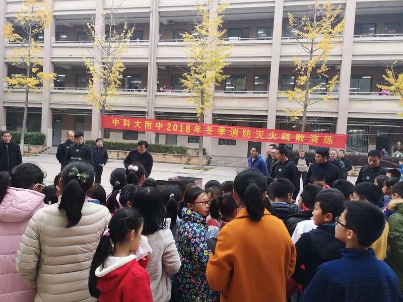 11月9日为“119”消防日,每年的11月为“119”消防宣传月,今年的活动主题是“全民参与、防治火灾”。为了增强师生消防安全意识以及疏散避险能力,培养学生应急逃生自救技能,2018年11月21日下午,中科大附中组织小学四年级、七年级师生开展了2018年冬季消防应急疏散演练活动。