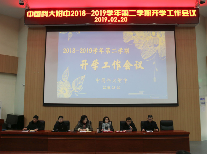 辞别旧岁,喜迎新春。2019年2月20日上午,中科大附中2018-2019学年第二学期开学工作会议在报告厅召开。中科大附中党总支书记、校长李蓓,副校长蔡婉若、张峻菡、徐斌,教务处主任黄严生,德育处主任束从武出席会议。会议由徐斌副校长主持。