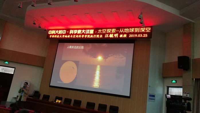 3月25日下午,中科大附中第三十期“科学家大讲堂”活动在报告厅举行。本次活动有幸邀请到中国科学技术大学博士生导师、国家杰出青年科学基金获得者、教育部长江学者特聘教授、地球和空间科学学院现任执行院长汪毓明老师,为二百多名四年级小朋友带来了一场精彩的科普讲座:太空探索——从地球到深空。本次活动由小四年级组长严文明老师主持。