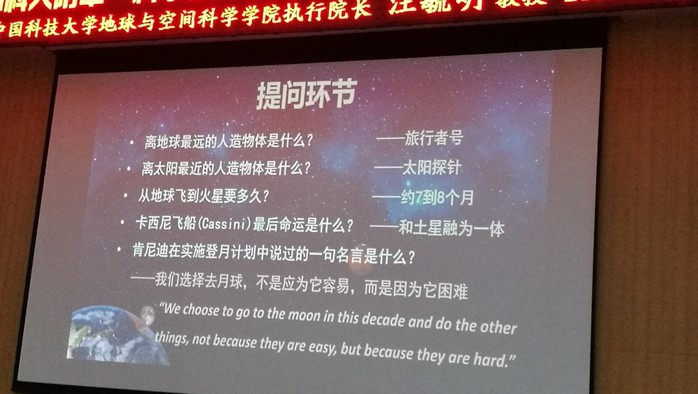 在互动环节,孩子们表现出对太空世界的极大兴趣,纷纷举手提问,汪教授耐心地一一解答。“我们选择去月球,不是因为它容易,而是因为它困难。”最后,汪教授把这句话送给现场的所有同学,告诫大家在学习的道路上要敢于挑战,迎难而上。