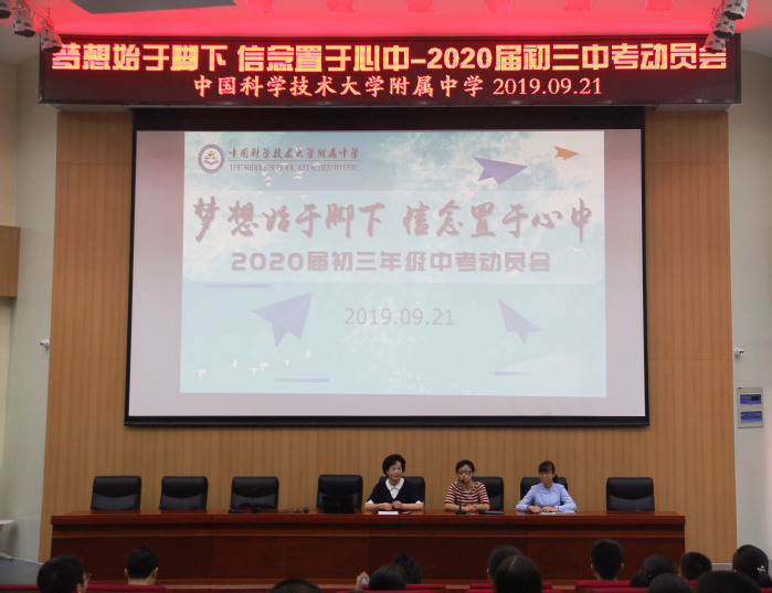 9月21日下午五点,科大附中初三年级召开“梦想始于脚下,信念置于心中”中考主题动员会。副校长蔡婉若、毕业班班主任及全体初三学生参加了会议,会议由初三年级组长吴燕燕老师主持。