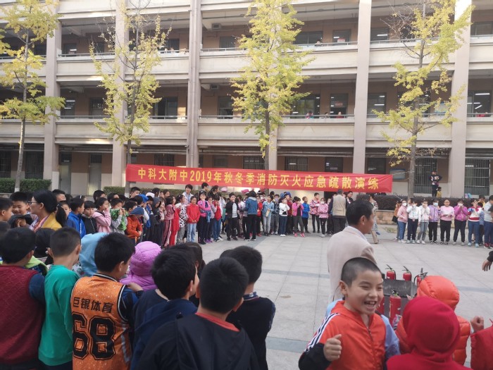 消防灭火应急疏散演练已是科大附中校园安全的一项常态化活动。演练中师生的消防安全意识得到强化,在亲身体验中提高火灾险情的避险自救能力,将创建“平安校园”工作落到实处。本次冬季消防灭火应急疏散演练得到附中办公室、总务处、德育处、团总支、大学保卫等部门以及校园安全家长监督委员会的大力支持。