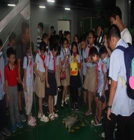 同学们先到了清溪净水厂会议室,在污水厂陈晶晶老师生动有趣的课堂讲解中揭开了污水处理的神秘面纱,让同学们认识一个不一样的水世界。课堂上,陈老师取了两个烧杯的水样,一杯污水、一杯净化后清水水样,两者直接鲜明的对比,勾起了同学们的好奇心:是如何做到污臭难闻的浑浊水变为清澈无污染的生活用水呢?带着疑问,我们观看了生动感人的动画片“小水滴旅行记”该片演绎了一个小雨滴的经历:小水滴->粗细格栅->进水泵房->细格栅->速沉池->改良A2/O曝气池->二沉池->中间提升泵房->深床滤池->紫外消毒渠->尾水提升泵房->出水,好繁杂的经历啊!小雨滴奇妙的经历让我们知道了生活污水是如何被净化的,又是如何被循环使用的,循环使用的程序有多复杂,成本有多高!珍惜水资源刻不容缓!
