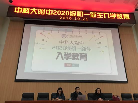 为使新初一学生适应新环境、新生活,尽快完成小学生到初中生角色的转变,合理规划好三年学习生活,2020年10月21日下午,科大附中开展初一新生入学教育活动,德育处主任黄乃斌、副主任刘飞、初一年级班主任与全体新生参加了活动。活动由初一年级组长魏丽云主持。