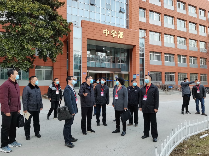 黄素芳一行先后检查了小学部校园及教室、徽州大道测温区及家长候接区、中学部校园及多功能室、实验室、水阳江路测温区等区域,对附中校园常规安全、疫情防控、消防、实验室及危化品安全等工作进行了详细的询问和检查,重点检查了教学楼消防设施、危化品实验室。