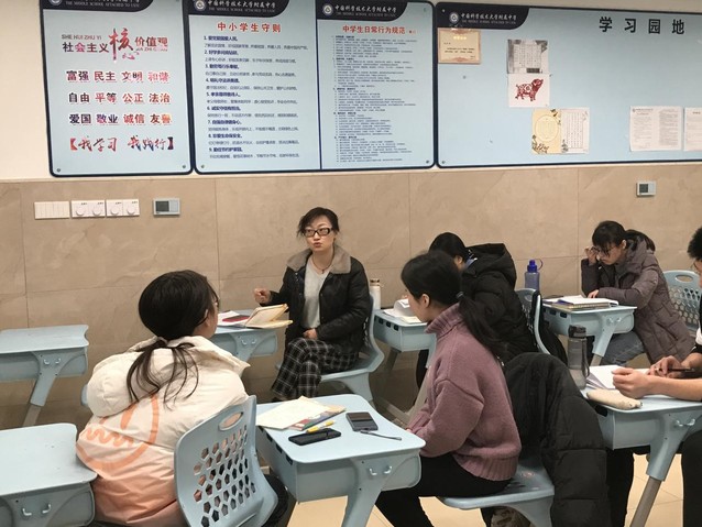 1月19日下午,在科大附中初一年级教室,中国科学技术大学支教团第23届支教队开展了无生上课及评课活动。本次活动由附中教务处组织,副主任吴燕燕老师主持。中国科学技术大学团委专职团干凌辉老师和中科大附中的五位教学指导老师及全体支教队员参加了本次活动。