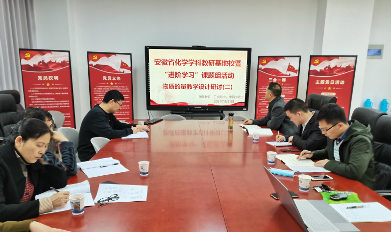 4月1日上午,科大附中联合小168中学、工大附中三所安徽省高中化学实验基地校开展了第二次“物质的量”大单元教学设计研讨活动。附中副校长徐斌、教务处副主任戈益超、工大附中特级教师徐伟、小168中学潘磊老师、合肥师范学院实习教师及科大附中化学组全体成员参加了会议,会议由科大附中化学组教研组长刘帅东主持。