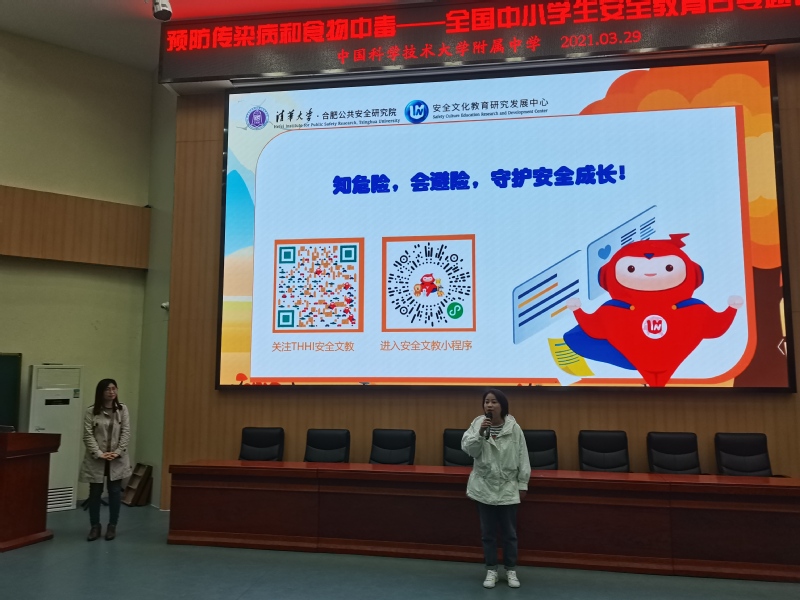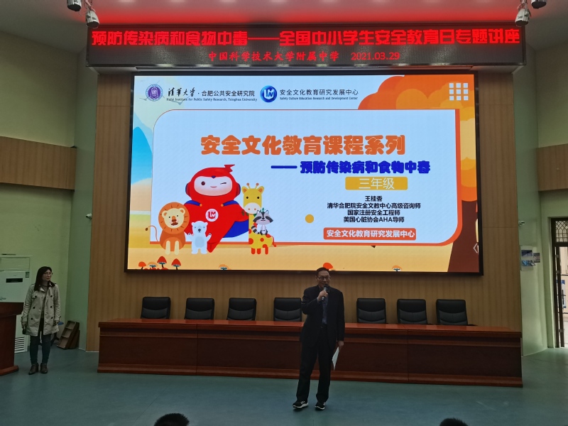 今年的3月29日是第26个全国中小学生安全教育日。为普及健康知识,提高学生安全意识,营造健康安全的校园环境,科大附中特邀清华大学合肥公共安全研究院高级咨询师王桂香老师为我校三年级学生作专题讲座。本次讲座的主题为《预防传染病和食物中毒》,活动由综治办主任张兴连主持。