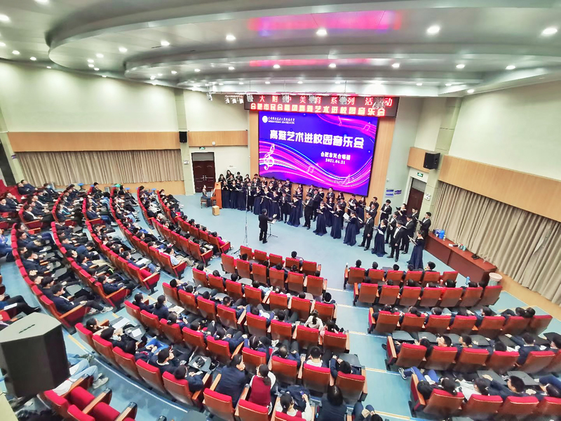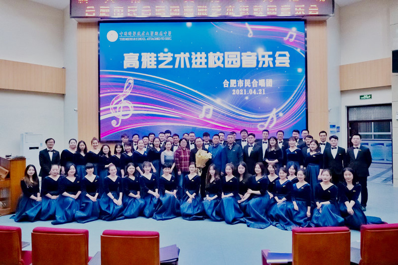 为了加强美育教育,提高学生的人文素养,提升校园文化品味,丰富校园文化生活,中科大附中美育系列活动之高雅艺术进校园——合肥市民合唱团专场音乐会,于4月21日下午5点半在我校报告厅精彩上演。副校长张峻菡简短致辞。演出由德育处副主任朱永主持,我校高一年级全体师生及音乐爱好者观看了演出。