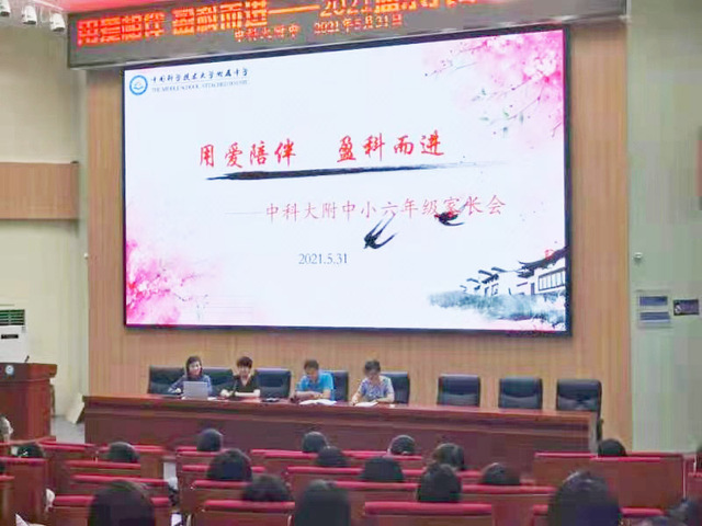 5月31日下午,中科大附中组织召开了小六年级全体学生家长会。校长助理黄严生,教务处副主任吴燕燕、李秀荣,六年级组长严文明参加了会议,会议由吴燕燕主持。