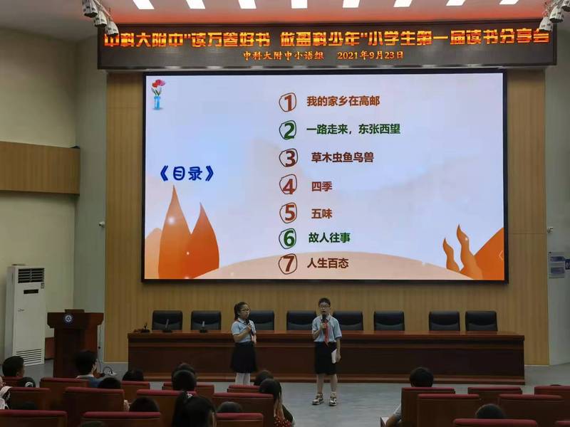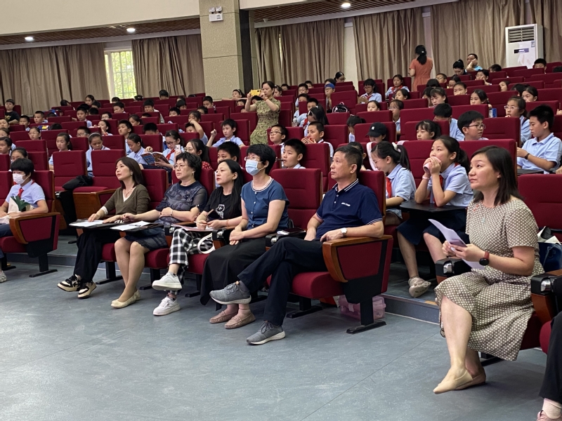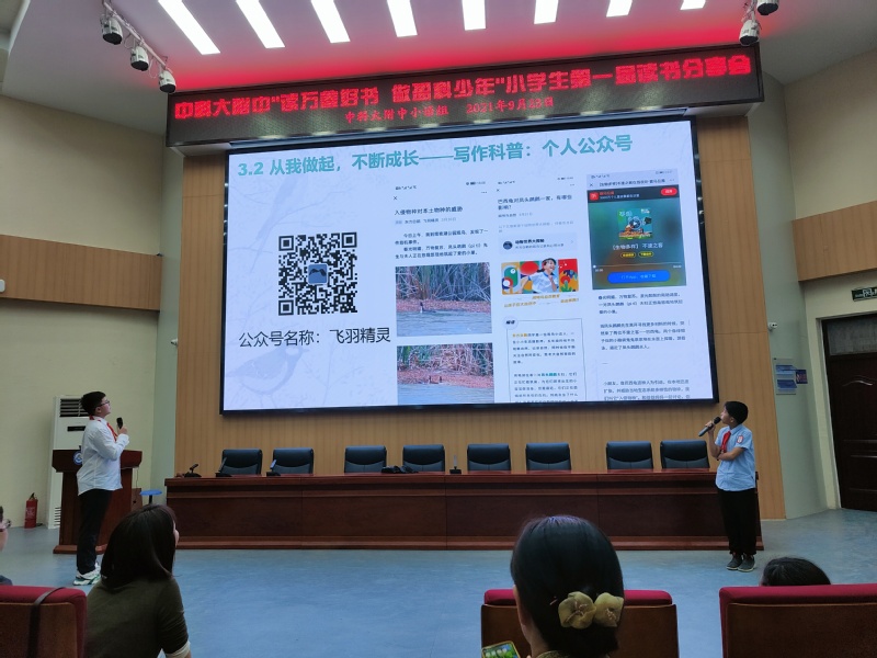 担任主题分享任务的是五年级和六年级的10组学生代表,他们都是各班在班级分享的基础上推选出的优秀学生。中科大附中校长助理黄严生莅临现场观摩并作指导,小语组老师、五年级全体学生和其他年级部分学生代表观摩了本次分享会,活动由六年级郭依诺、李冠颉、左犇三位同学共同主持。
