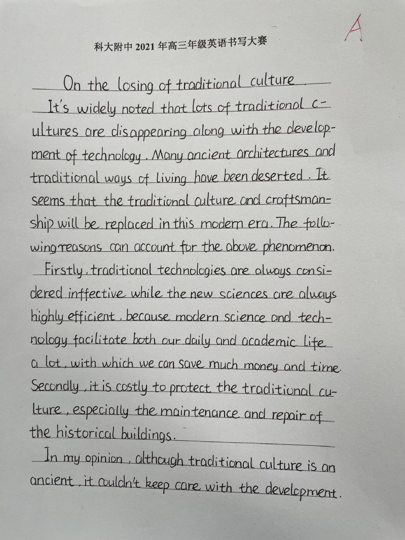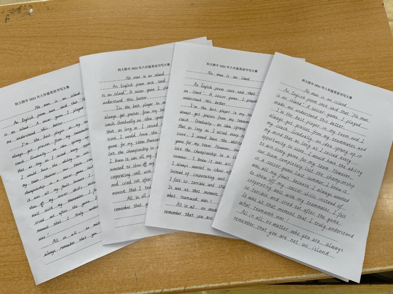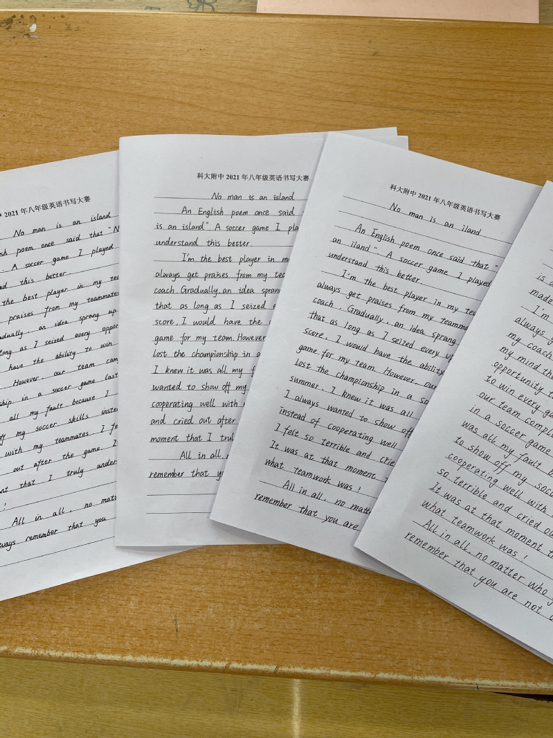 为了培养学生良好的书写习惯,提高学生英语书写能力,10月26日,中科大附中中学部学生参加了学校英语组举办英语书写比赛。