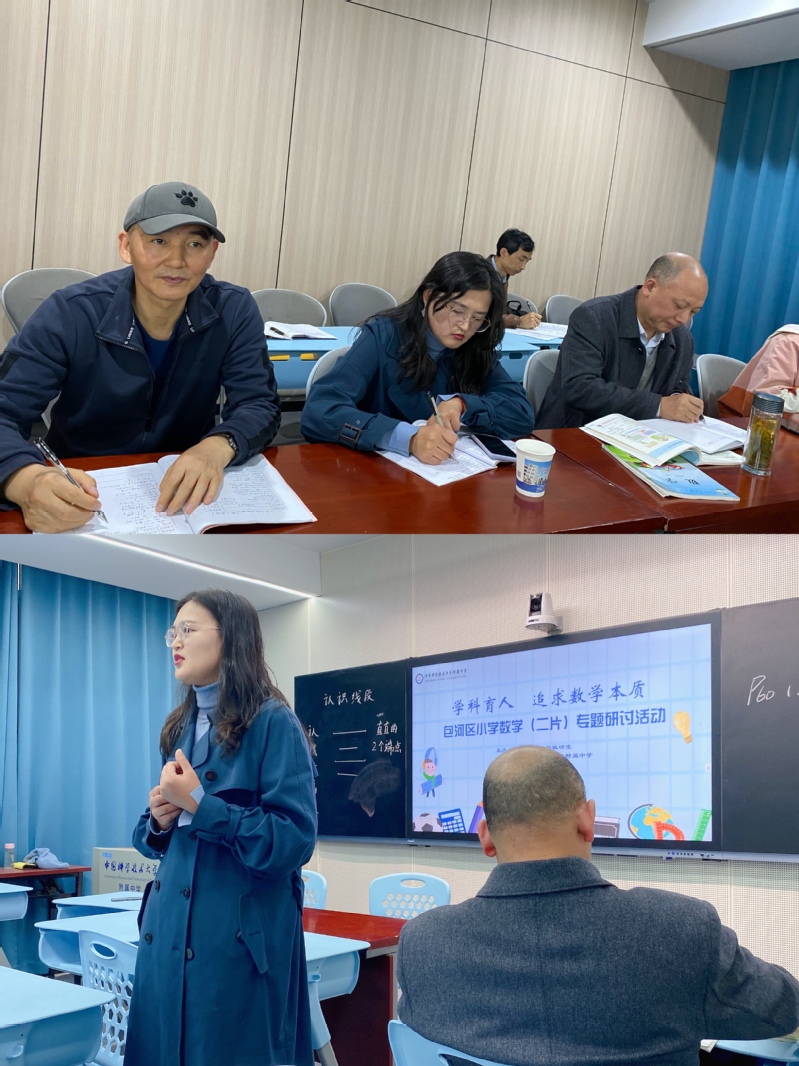 在评课交流环节,两位授课老师先简短介绍了教学设计思路和上课体验感受,随后听课教师围绕课堂教学情况进行评议交流。朱卉卉副校长对两节课作了细致的剖析,肯定了两位老师的教学方式和学科素养,同时提出了中肯的建议。科大附中小数组教研组长徐敏在评课的基础上进一步提出了大部分教师在教学中面临的困惑。刘昌福主任则在第一时间答疑解惑,提醒青年教师要充分尊重教材,紧密依托课本。