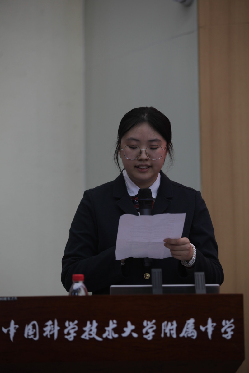 揭牌仪式在庄严的国歌声中拉开序幕。中科大基础教育集团党政办公室主任、集团团委书记徐晓宏宣读了团校成立通知。学生团校常务副校长、中科大附中副校长张峻菡宣读了团校的纪律要求。高三(4)班祖晨妍同学代表全体团校学员发言。中科大基础教育集团党委书记、中科大附中校长马运生和中科大团委书记杨晓果共同为团校揭牌。