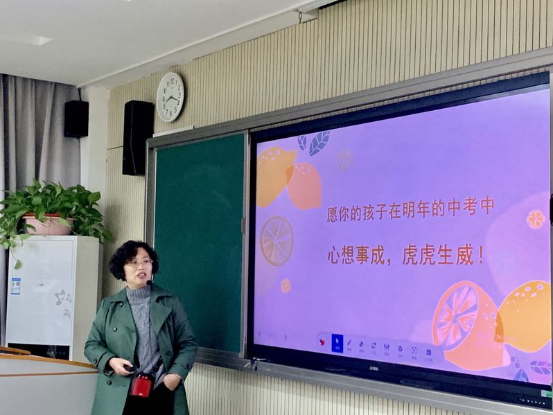 吴燕燕对本次初三年级期中考试情况作了详细分析。她在肯定成绩的同时,也明确指出目前存在的问题并建议家长采取科学有效的方法督促孩子学习。黄严生从学生到校时间、早读表现等方面指出学生学习紧迫感不够,要求家长帮助孩子制定合理的学习计划,培养孩子自主学习的良好习惯,激发孩子的学习热情;家长应关注孩子学习效率,多于老师沟通,避免出现孩子熬夜刷题、不去理解死记硬背、手机搜答案、忽视错题等方面的误区。张峻菡从家长心理出发,建议家长摆正心态,要树立信心,同时多倾听孩子心声;要帮助孩子找到问题所在,并力求改变,将帮助孩子落到实处;家长要杜绝焦躁心理、攀比心理,引导孩子科学作息,劳逸结合,及时做好孩子的心理疏导工作。