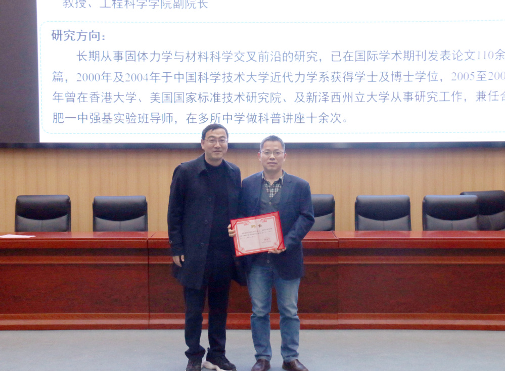 随后,马运生为中国科学技术大学倪勇、武晓君、吴长征、孙方稳、王作勤、潘楠六位老师颁发“瀚海计划”导师聘书。六位导师主要任务是:在新高考形势下,开阔学科视野,引领专业选择,培养科研兴趣。