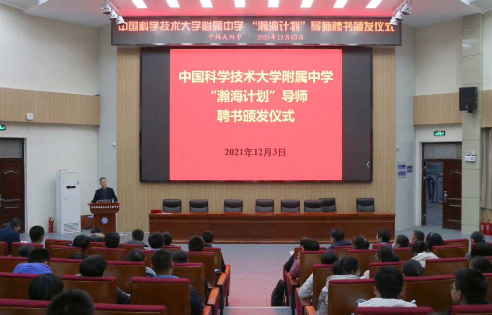 2021年12月3日下午,中科大附中“瀚海计划”导师聘书颁发仪式在我校报告厅隆重举行。中科大基础教育集团主任、附中校长马运生、副校长徐斌、中科大六位受聘导师及高一年级全体学生参加仪式。仪式由教务处副主任戈益超主持。