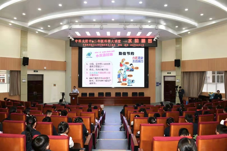 3月11日下午,中科大附中小学二年级举办“科学大讲堂”系列活动,本次活动特邀中国科学技术大学环境科学与工程系穆杨教授为同学们作“水的秘密”主题讲座。活动由二年级组组长宣薇主持。
