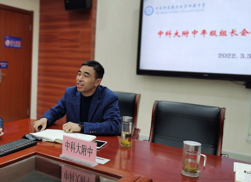 副校长徐斌首先要求各年级组要高度重视并落实疫情防控政策要求。他肯定了年级管理工作的进步:年级组长增强了角色意识,能从工作的执行者向管理者转变,能从关心自己班级向统筹规划年级组管理转变。他要求年级组长要增强责任意识,着眼于学生全面发展,更好地关注管理细节。