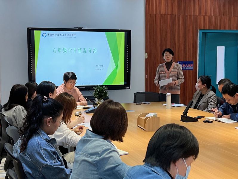 为进一步加强六年级毕业班督导与管理工作,探索“双减”背景下如何提升教学质量及管理效率。4月7日下午,中科大附中小六年级组全体教师齐聚润科楼一楼会议室召开毕业班全体教师会。学校领导班子及全体六年级教师参会,会议由教务处副主任李秀荣主持。