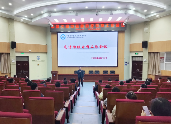 中科大基础教育集团主任、校长马运生作总结发言。他通过列举身边实例,分析当前我市及大学疫情防控的复杂形势,疫情就在身边,容不得半点疏忽。马运生对各部门提出要求,全体师生员工必须高度重视疫情防控,提高认识、绝不松懈、严把校园入口关、严格落实校园值班值守;综治办要密切关注国内中、高风险地区信息变化,及时提醒师生配合落实防控工作;所有党员都要走到疫情防控第一线,主动承担疫情防控责任;各部门、各班级对学生和家长要加强引导,加大宣传教育力度,提高防控思想认识。最后,他希望附中全体教职员工共同努力,守好校园这片净土,确保师生安全安心。