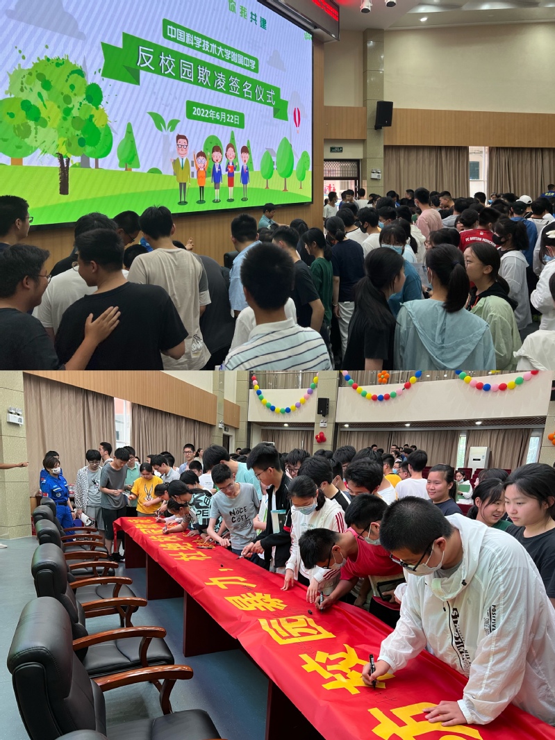 活动最后,许名老师带领全体同学宣誓:“不施暴、不忍暴,文明校园,从我做起!”在我校综治办组织下,同学们纷纷走上台前进行反欺凌签名。此次蓝天救援队走进中科大附中,送来了一堂生动多彩的安全教育课,为青少年平安健康成长撑起一片“蓝天”。