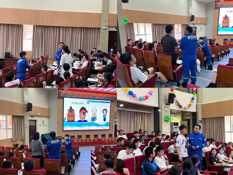本次宣讲会由合肥市蓝天救援队宣讲组讲师、医疗组组长许名老师主讲。蓝天救援队是中国民间专业、独立的纯公益紧急救援机构,成立于2007年,蓝天救援已在全国31个省市自治区成立品牌授权的救援队,可随时待命应对各种紧急救援。会议伊始,许老师首先宣讲了“防性侵”有关内容,他通过图片展示、案例分析等方式,让同学们认识到男生女生身体中哪些部位是“不可触摸”的,正确识别身体的隐私部位,分辨和防范性侵害。许老师利用丰富的图片,与在座的同学交流互动,共同讨论如何在不同场合保护自己、加强预警。