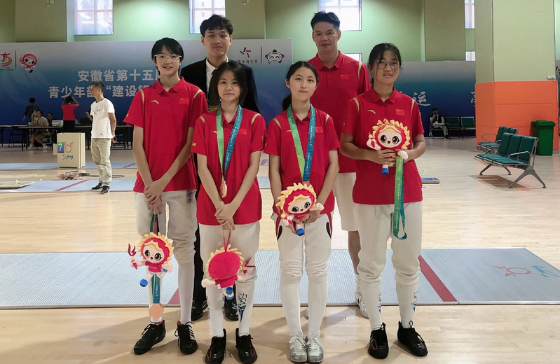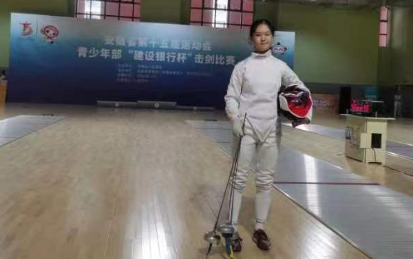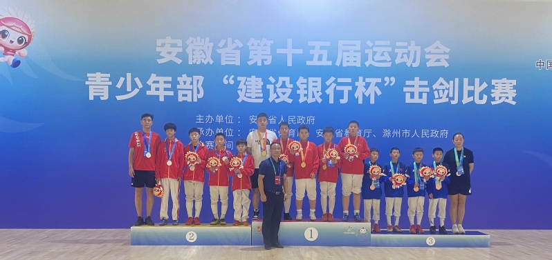 8月1日,安徽省第十五届运动会青少年部击剑比赛在滁州市开赛,我校共有4名学生参加此次运动会,取得了优异成绩。七(1)班刘偲清同学、七(2)班鲁羽思分别斩获男子花剑丙组、女子花剑丙组个人及团体赛金牌;七(2)班艾新翊萱同学、七(3)汪乐楠同学分别获得女子重剑丙组团体金牌和团体铜牌。