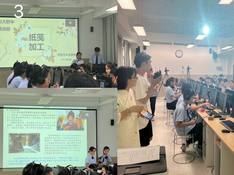 8月4日中午12:30,线上交流活动正式开始。我校学生代表首先展示成果。杨瑞媛、臧一俊同学介绍了中科大附中基本概况后,宋宸宇、凌紫陌同学介绍我校非物质文化遗产的具体选题内容并播放相关视频。朱忆、张宸瑞、丁子原和周凤来仪四位同学分别从中国的“非遗”、安徽的“非遗”、“非遗”的价值以及如何保护和传承“非遗”四个方面作系统总结。活动中,同学们准备充分,介绍时亲切自然,充分展现出我校学子多才多艺的青春风采。