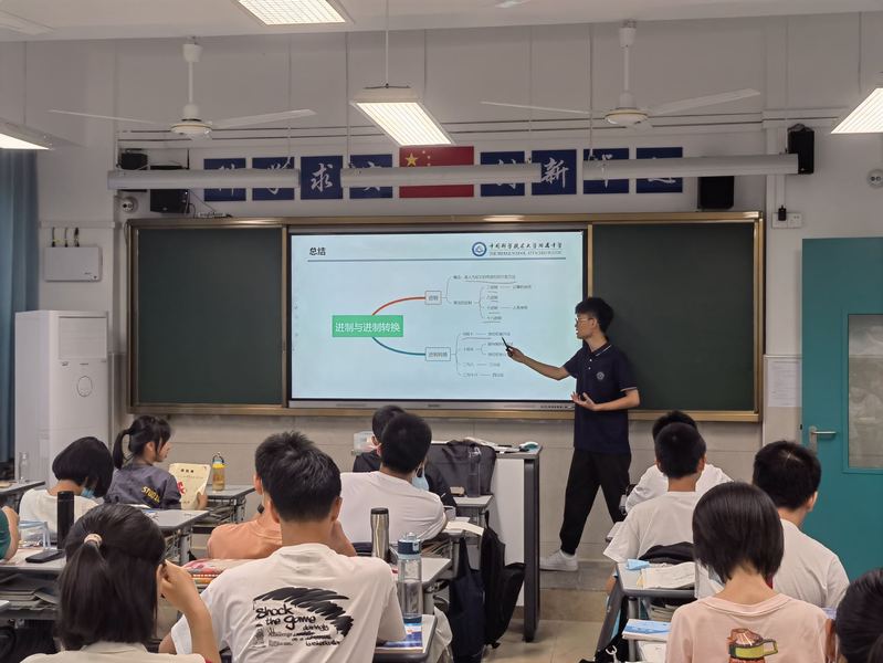 为积极响应我校新一轮“大练兵、大比武”活动,推进教师不断提高对“三新”课程的认识,促进教学质量提升,中科大附中信息技术组开展了“大练兵”教研活动。2022年9月22日下午,袁昊老师在高一(1)班执教《数的进制与进制转换》一课,本次活动按照课堂展示、组内评课的顺序依次进行,活动由信息技术组教研组长梁辉老师主持。
