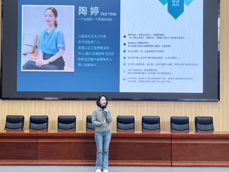 此次讲座,小学语文组邀请到播音主持专业的陶婷老师前来做指导。陶婷老师毕业于安徽大学播音主持专业,曾任电台主持人,后致力于儿童语言艺术工作,现担任小学第二课堂小主持人班外聘辅导老师。