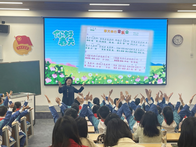 交流会在学生们动听的歌声中拉开序幕。韩凤华老师的吟诵指导课上,悠扬动听的古诗吟诵声不时向窗外飘去。课上还展示了紧张刺激的“春之飞花令”游戏,学生庞大的古诗词积累量赢得了在场老师的阵阵掌声。