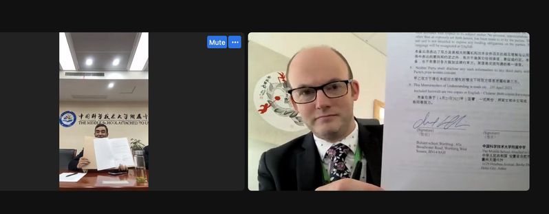 在大家的共同见证下,汤胜校长与英国博亨沃辛学校校长Paul Collin在线签订了姐妹学校合作项目协议。