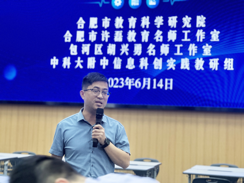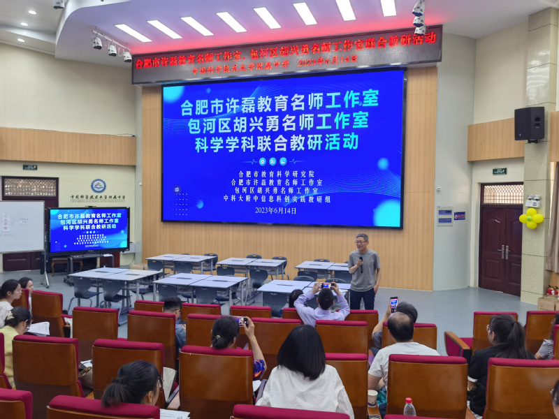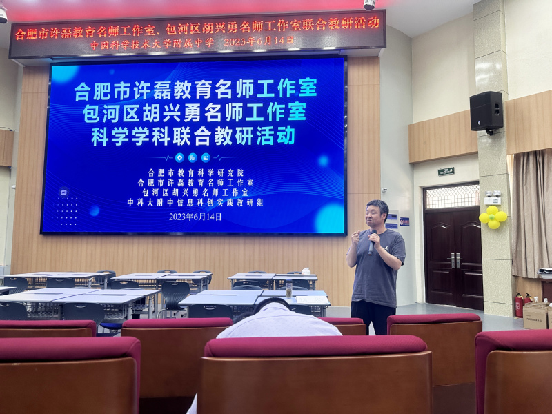 6月14日,我校联合合肥市许磊教育名师工作室、包河区胡兴勇名师工作室团队在报告厅开展小学科学STEAM主题联合教研活动。包河区、蜀山区小学科学老师参加了本次活动。活动由我校信息科创实践教研组副组长周军华主持。