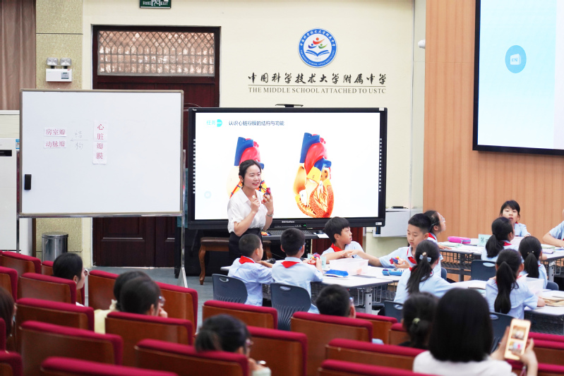第二节课更让人耳目一新,我校武倩老师和合肥市师范附小二小张永老师联合执教《心脏瓣膜》。上半节课,武倩带领我校五(1)班学生了解心脏瓣膜的结构和功能,张永在后半节课拓展生活中结构和功能相互适应的实例。从科学到生活,从生活到环保,层层递进。