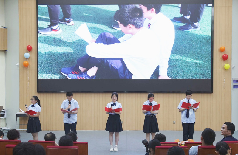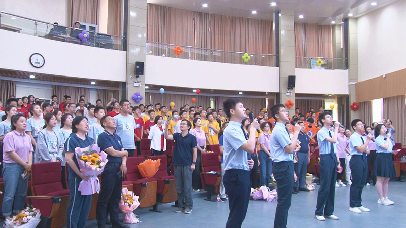 分别之际,初三全体班主任与同学们一同演唱了歌曲《再见》。所有的回忆与不舍都融入歌声中。一曲终了,全体同学起立,读出这三年最不想写的请假条,汤胜校长难舍的一句“同意”,让此刻成为师生心中永恒的记忆。“我们是新的一代,闪耀着新的风采。我们在科学城学习,开拓新的世界……”毕业典礼在全体师生合唱的《托起希望的太阳》中落下帷幕,铿锵的旋律,激扬的歌声,在校园内久久回荡。