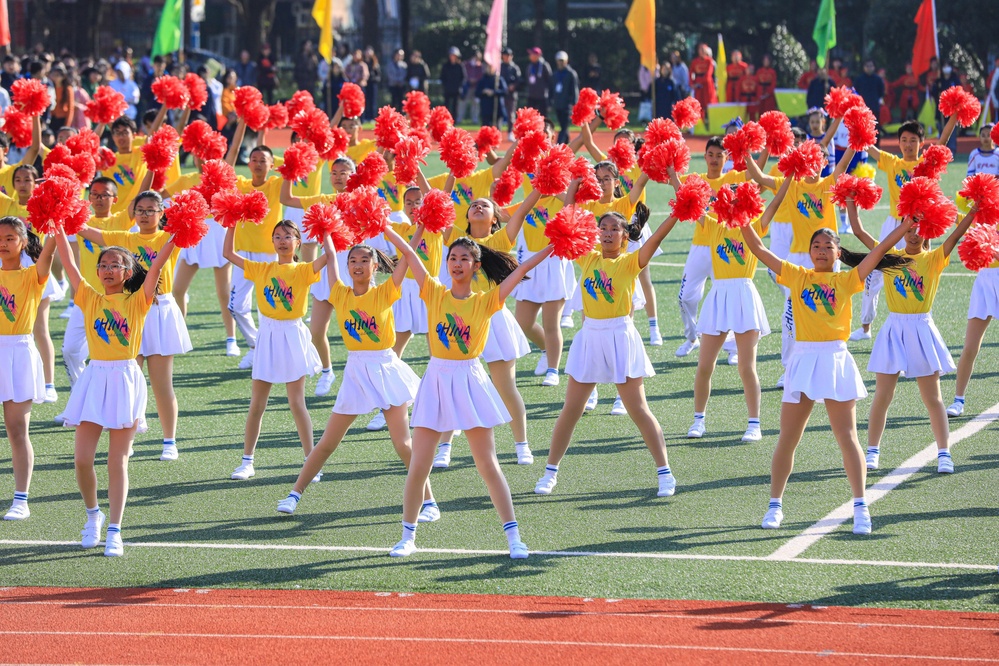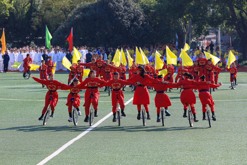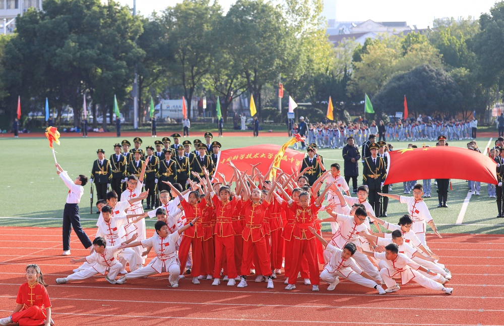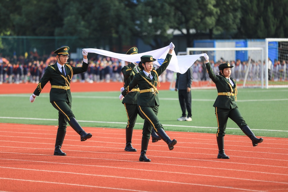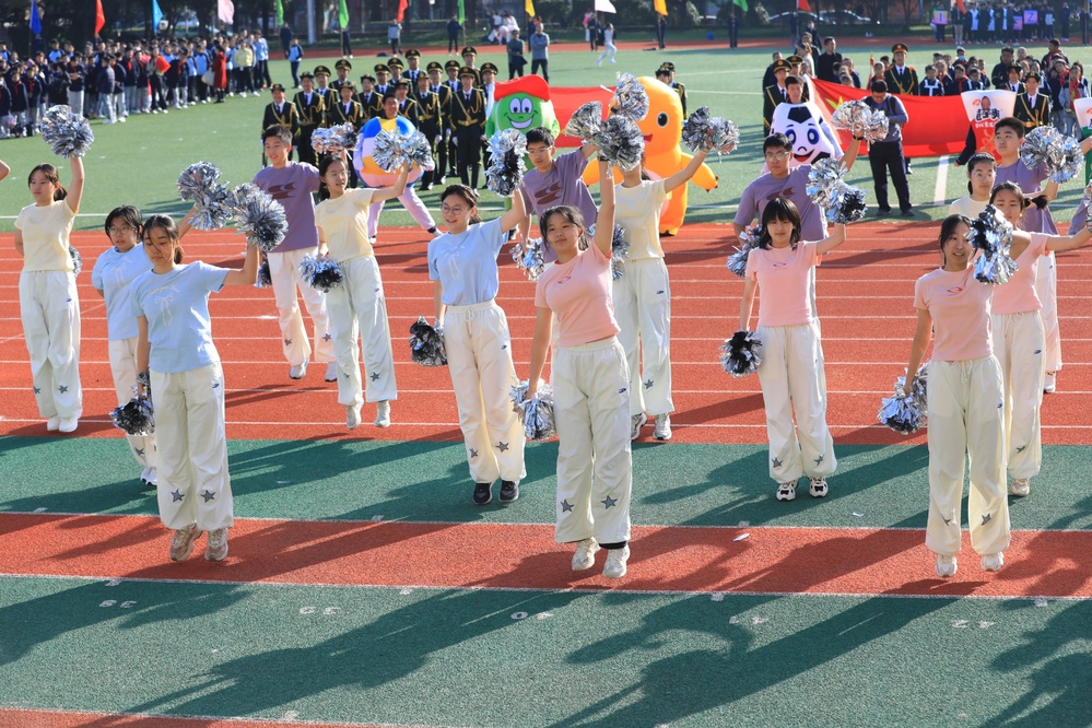 开幕式表演中,小学“燃梦”啦啦操队与八年级啦啦操队联袂登场,他们热情洋溢,步伐轻盈,童真与青春携手,绽放出梦想的光芒。太极拳表演中,高一年级学子白衣胜雪,动作如行云流水。他们以心领意,以意驱身,用青春朝气诠释中华传统武术的雅致与力量。最后,在舞动的旗帜中,独轮车特色表演精彩登场。同学们在飞转的车轮上展现平衡之美,将现场气氛推向最高潮。
