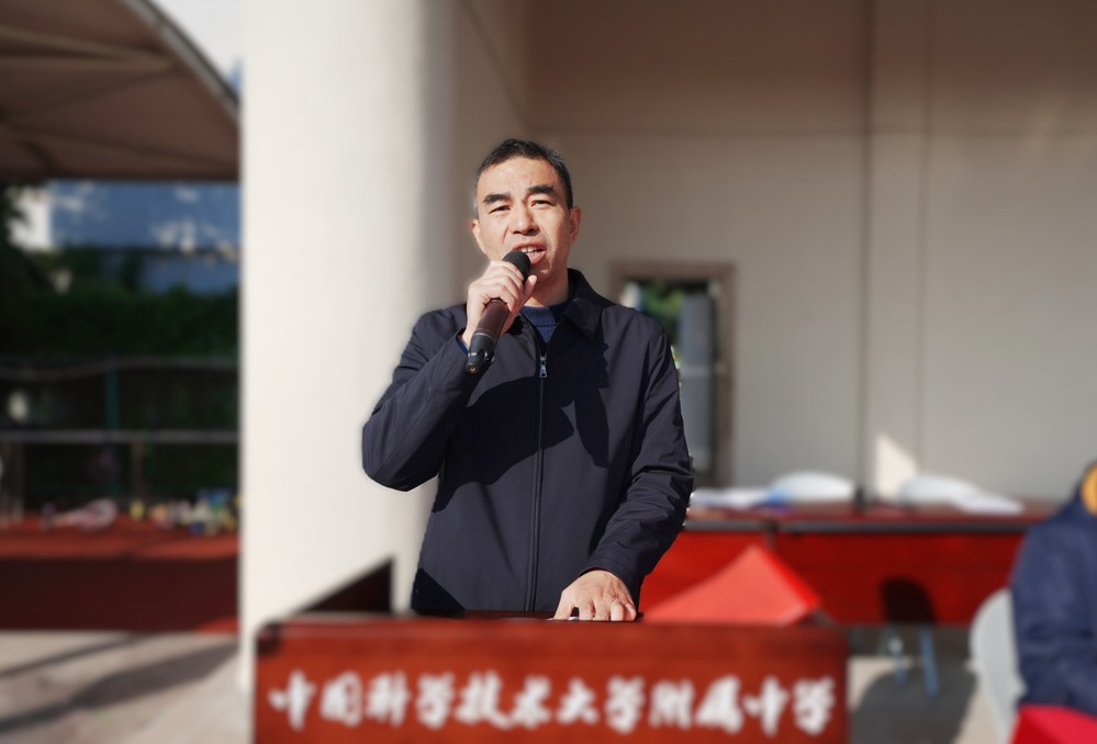 中科大基础教育集团副主任,中科大附中党总支书记、校长汤胜致开幕辞,向莅临指导的嘉宾、向精心筹备本届运动会的老师和同学们表示诚挚的感谢。中科大附中始终秉持“健康至上、强身健体”的育人思想,把增强学生体质、促进全面发展作为教育的根本目标,体育工作成果丰硕,师生竞技领域多点开花、捷报频传,学生体质健康水平稳步提升。汤胜勉励全体运动员以昂扬之姿,奋勇拼搏,在运动会上赛出风格,赛出水平,赛出团结。随后,高三(6)班汤文锝同学和本届运动会裁判张瑞桐老师分别代表运动员和裁判员郑重宣誓。
