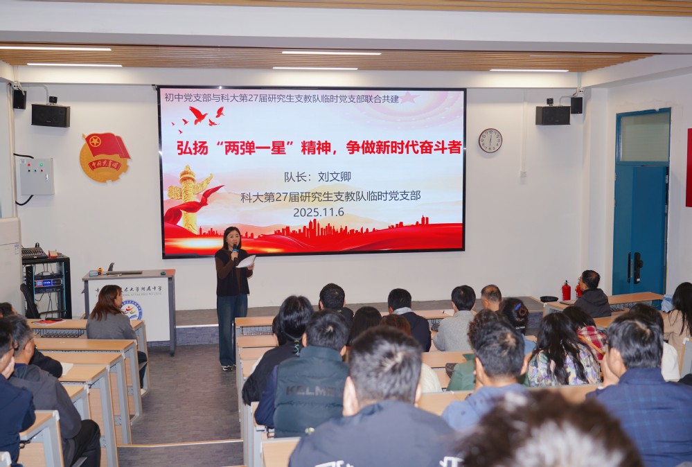 支教队临时党支部书记刘文卿在线作了题为《党领导下的中国核工业发展历程——弘扬“两弹一星”精神,争做新时代奋斗者》的专题报告,分享了支教实践与精神传承的深刻体会。