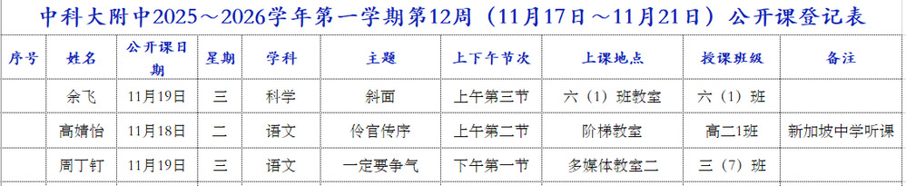 第12周(11月17日~11月21日)公开课信息表